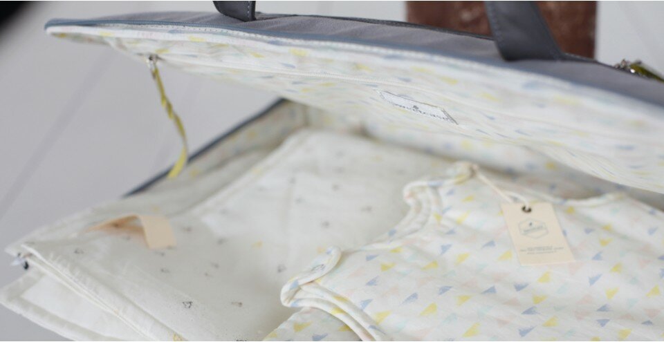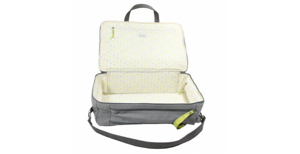 L'ouverture sur le dessus de la valise a été pensée pour un accès facile et rapide à la première tenue de bébé dans la salle de naissance, impossible de se tromper !